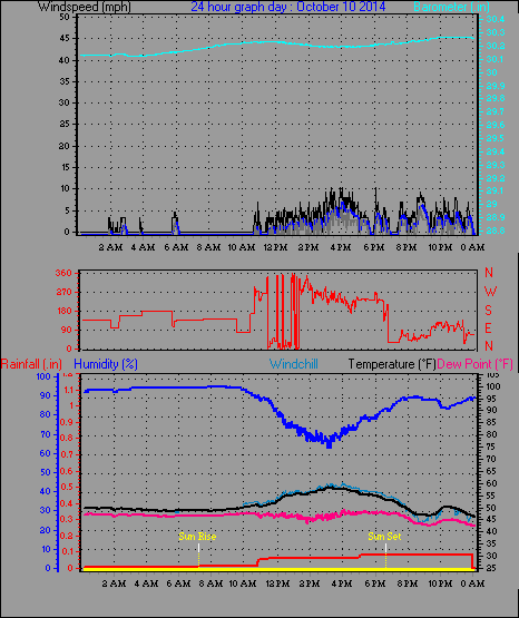 Maximum dewpoint = 46.1°F on day 01 at time 15:25