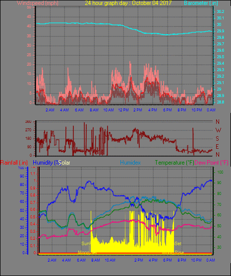 Maximum windspeed = 17.3 mph on day 04 at time 16:26