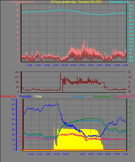Maximum windspeed = 13.8 mph on day 04 at time 14:28