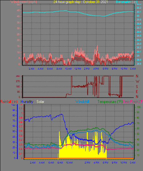 Minimum temperature = 28.7°F on day 31 at time 08:08