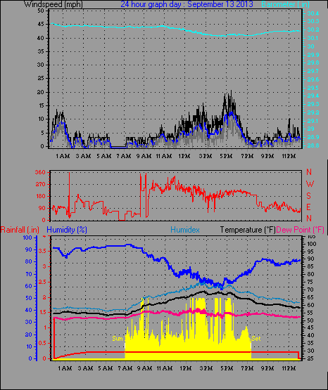 Maximum windspeed = 13.8 mph on day 29 at time 14:51