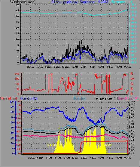 Maximum rain per minute = 0.040 in on day 14 at time 13:14