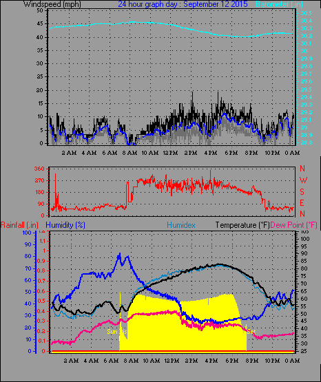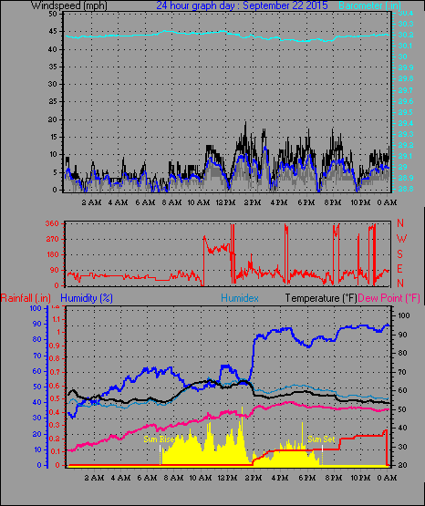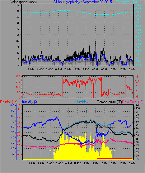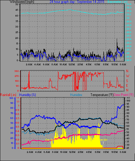 Maximum windspeed = 15.0 mph on day 02 at time 16:08