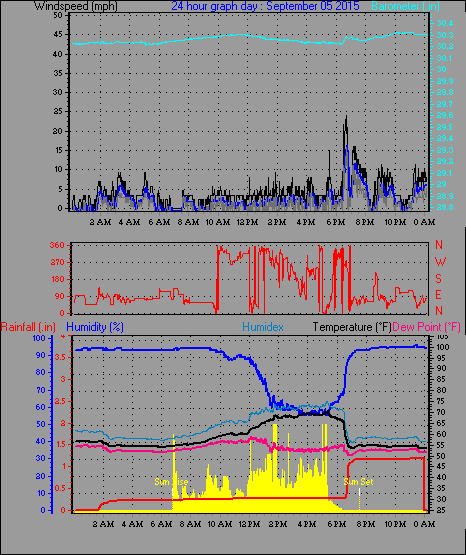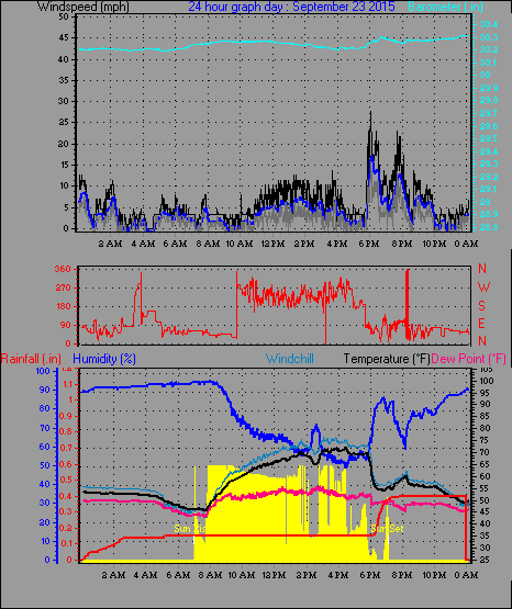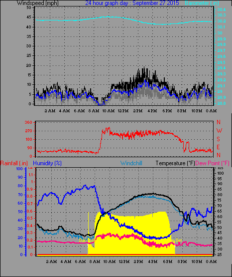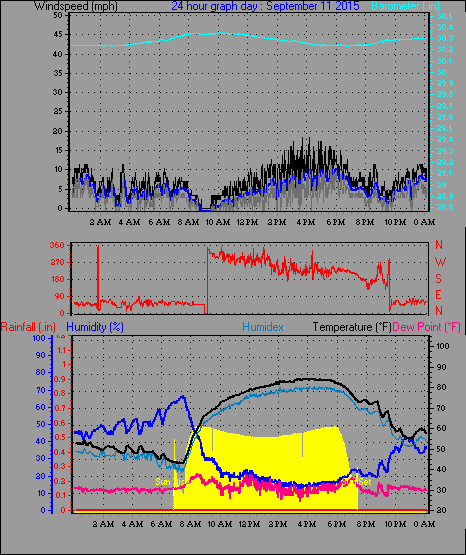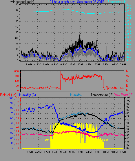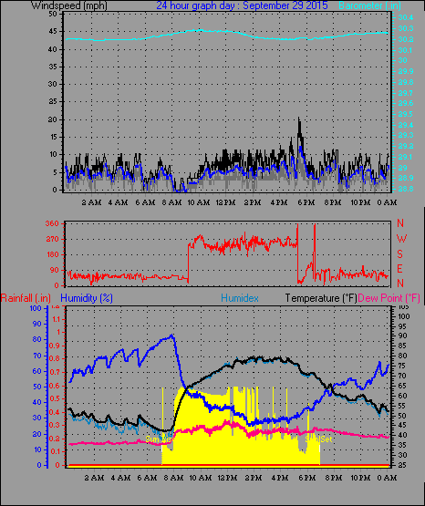 Maximum windspeed = 15.0 mph on day 29 at time 17:26