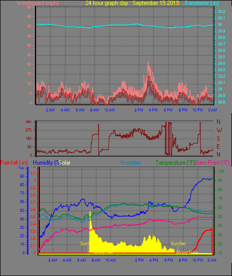 Maximum windspeed = 15.0 mph on day 01 at time 15:56