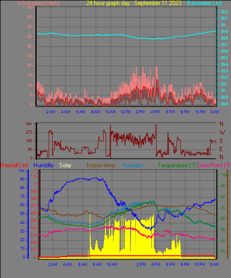 Maximum windspeed = 12.7 mph on day 29 at time 15:53