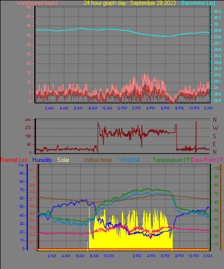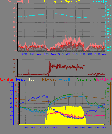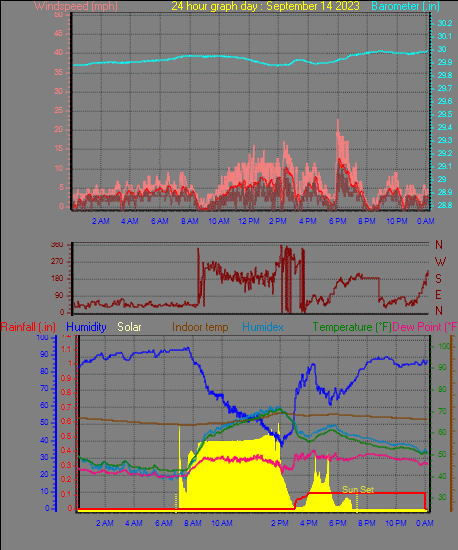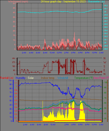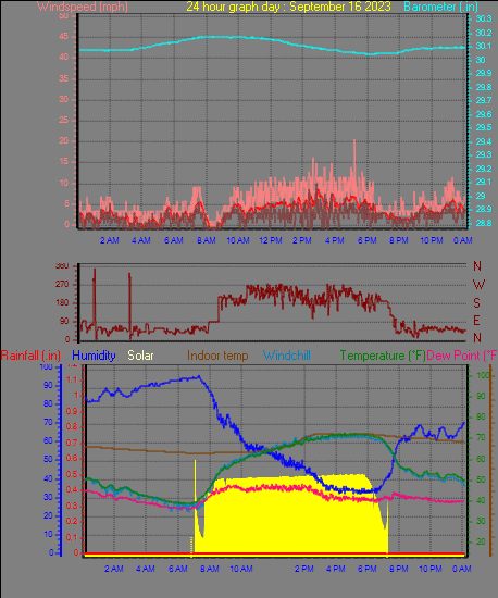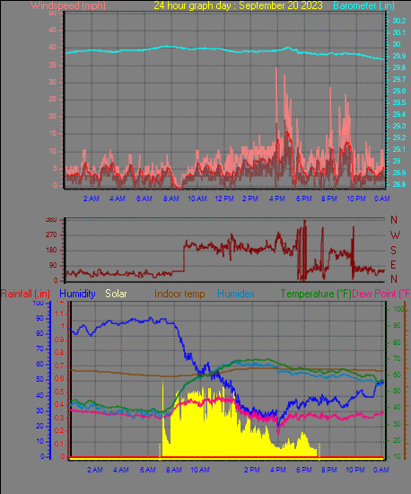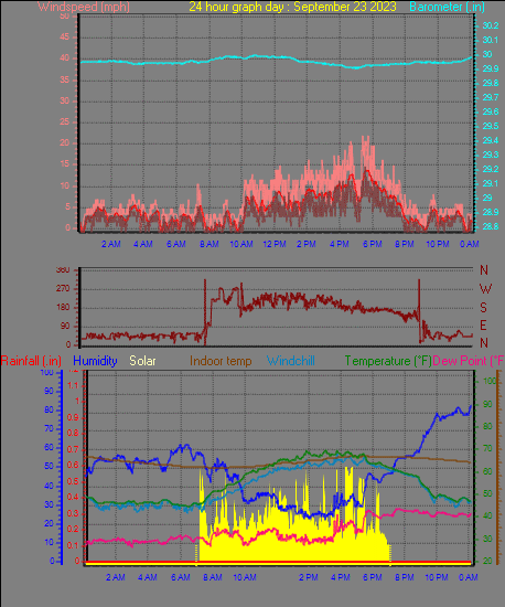 Maximum windspeed = 23.0 mph from 225°( SW) on day 20 at time 16:36