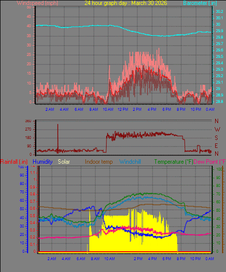Maximum windspeed = 17.3 mph on day 29 at time 15:23
