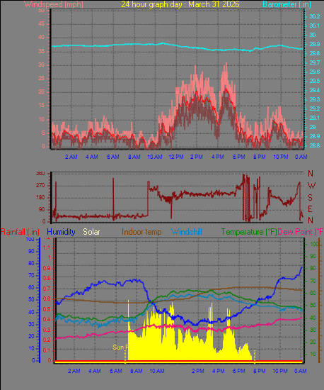 Maximum windspeed = 24.2 mph on day 31 at time 16:55